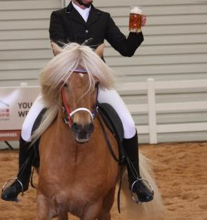 In the Icelandic Horse demos Nele gave a great commentary telling the crowd all about the breed while Birgit (Falinn) & Michelle (Haukur) demonstrated the gaits of the icelandic horse, rode with the Icelandic flags and had heaps of fun showing how smooth the tolt is by doing a beer tolt competition.